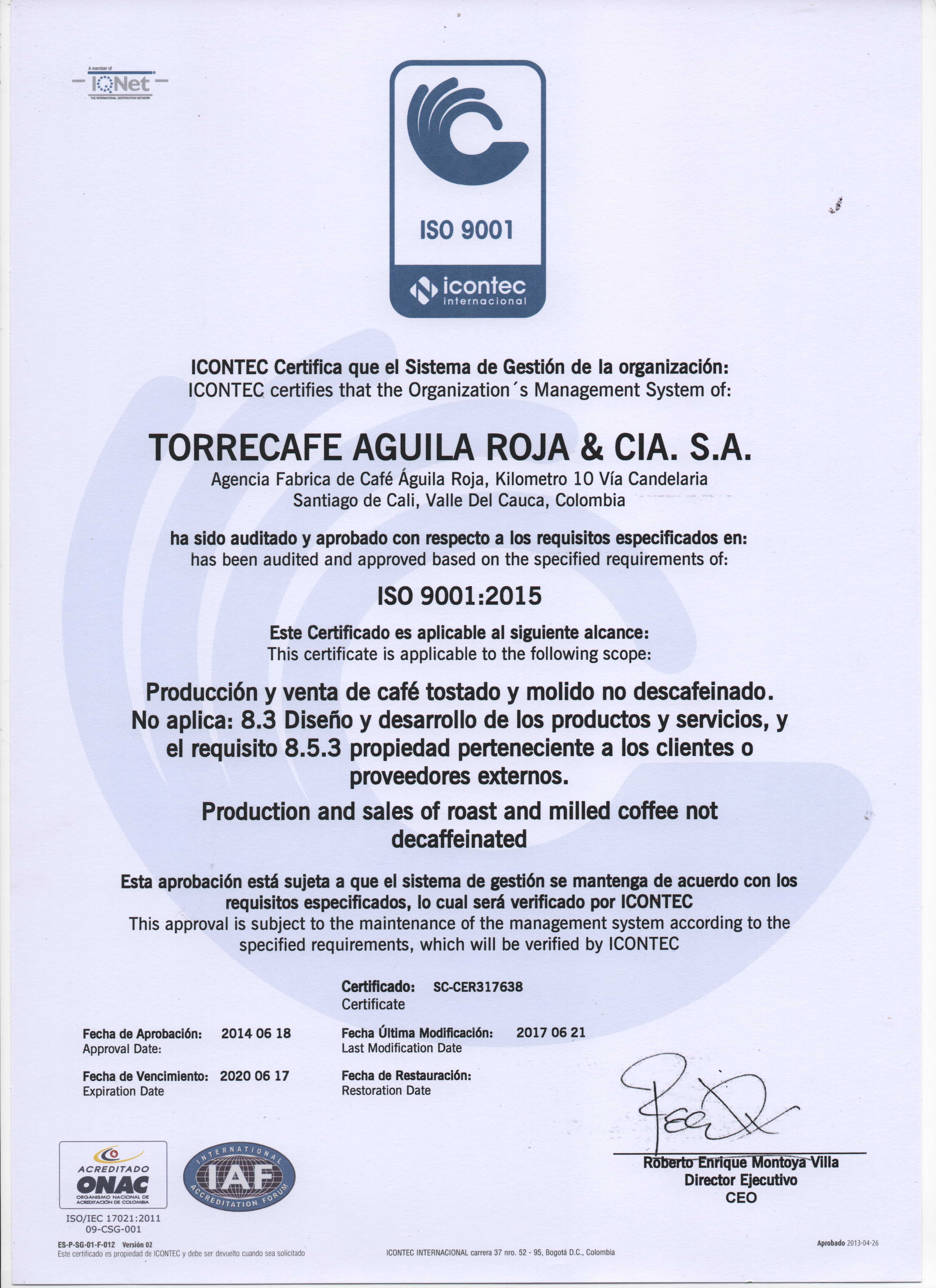 CERTIFICACIONES CAFÉ ÁGUILA ROJA